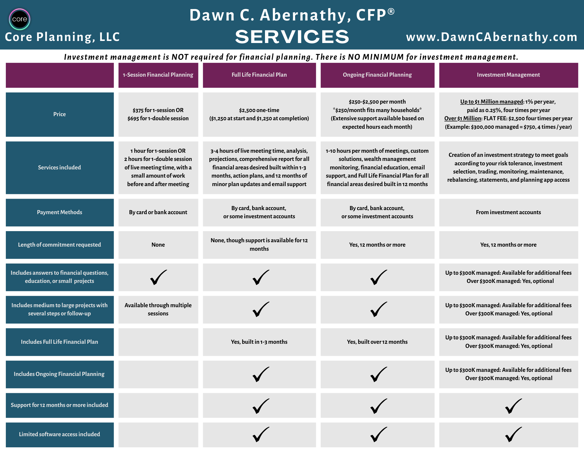 Investment management is not required in order to use our ongoing financial planning.